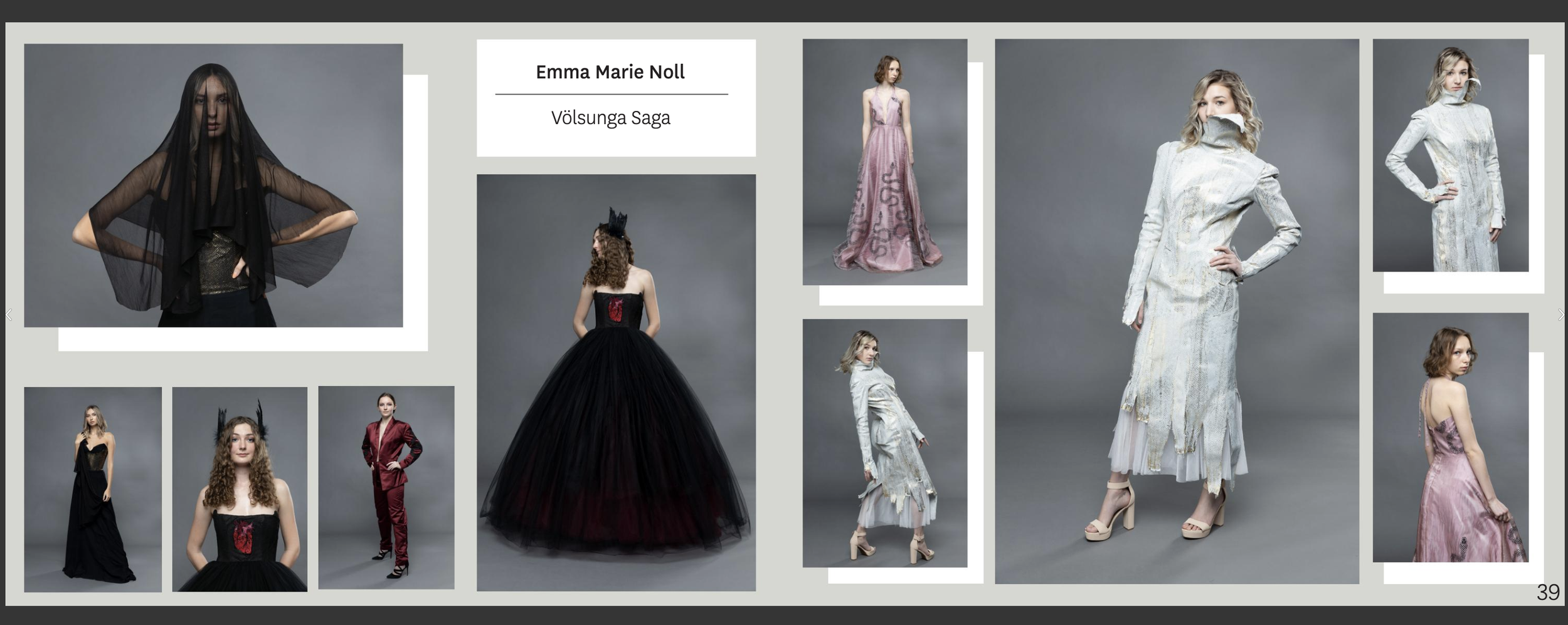 This seven-look couture collection explores an ancient tale of Sleeping Beauty from a new perspective. Shedding new light on this ancient saga which shows that feminism is woven into the culture and history of Icelanders by exploring sustainable deadstock fabric options and sourcing sustainable fish leather.
